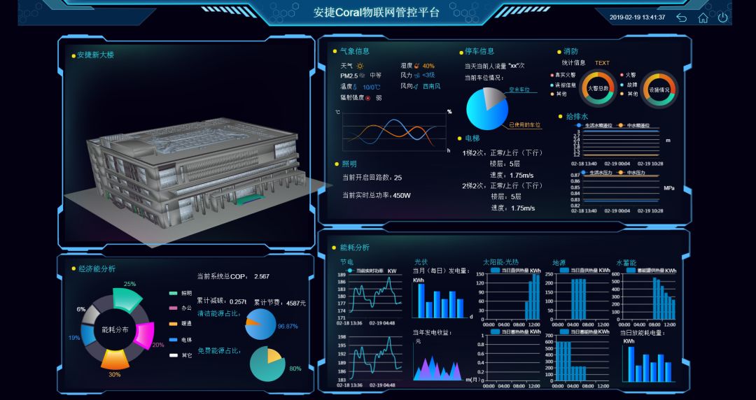 建筑模型信息系统(BIM)能够将各个建筑元素建立起内在的本身信息,并且整合建筑生命周期,使其能够改良规划、设计、建设、操作、和维护的流程之模型系统,并且能够充份的应用在营建工程上面。米兰milan物联能源互联网大厦便是借助于BIM技术的优势,在规划阶段进行了日照、风和热负荷等模拟,在基本方案的基础上进行BIM正向设计,同时以第二代物联网大数据管控Coral平台为核心,秉承“先节费,再节能”的运营原则,完成能源多项流转的实时监测、动态策略的下发调整,进而实现能源的最合理配给。