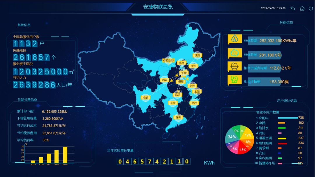 米兰milan能够将建筑物中的变电站、空调、供热、消防、安防、给排水、照明、电梯、地下停车场的动态能全部集中到同一个平台上;目前在全国拥有1000余个用户,其中大多数为高端用户;在用户端安装传感器近27万,每年节省运维费用和能源费用超过5亿元。