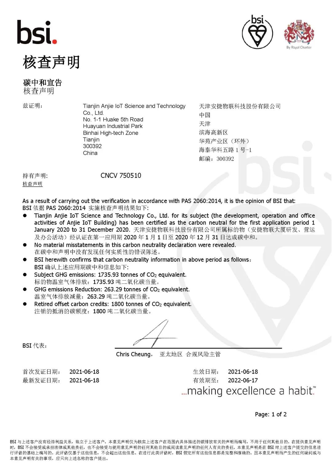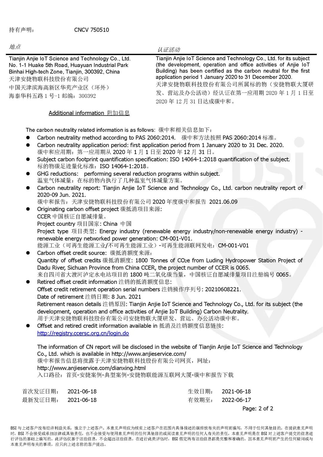 BSI受英国政府委托,独立制定了PAS 2060证实碳中和规范,并于2010年5月发布,成为全球第一个也是目前唯一一个碳中和审定标准。