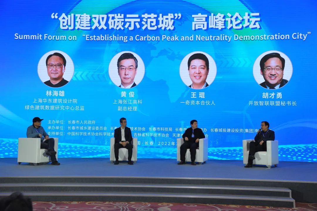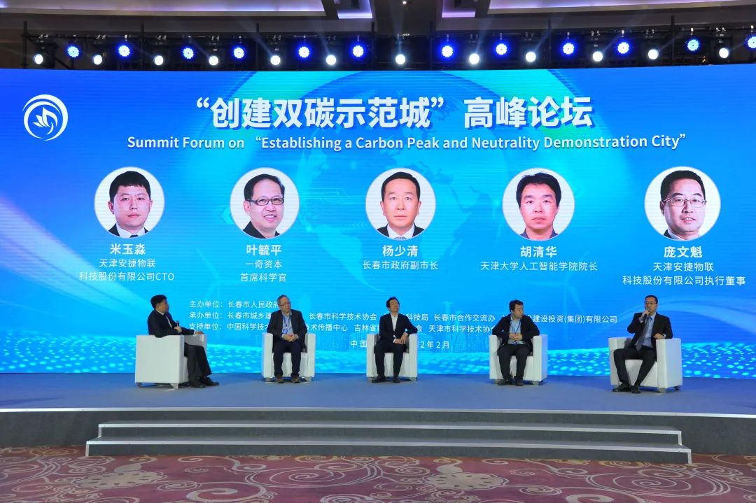 长春市副市长杨少清、双碳技术传播中心副主任兼米兰milan物联执行董事庞文魁、软通动力CTO叶毓平、天津大学人工智能学院院长胡清华、米兰milan物联高级副总裁米玉淼五位嘉宾,以【发挥科技创新引领,推进双碳示范城建设】为议题,共同展开探讨。