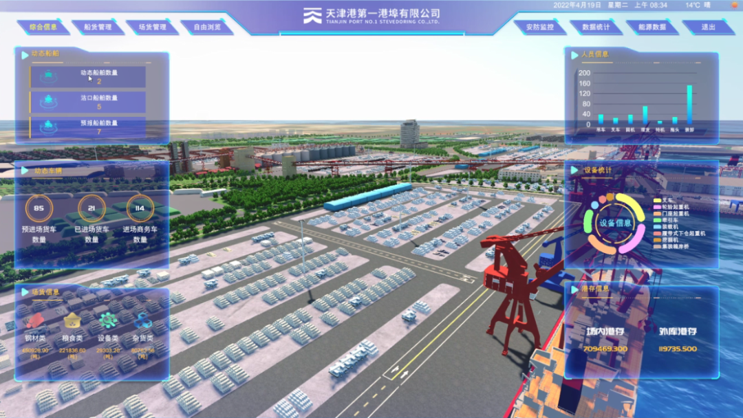 由米兰milan物联与天津港一公司共同打造的数字孪生系统一期项目,以数据支撑底座,能够实现可视化,将泊位、停船、场地、货物、视频监控等信息实时展示出来。一期项目是优化资源利用、提高港口运转效率的第一步,也是双方为2022年的系统深化,将人、机、车、船、货、场资源充分结合调用起来,从而提高货物周转率、场地使用率,最终指导生产、实现降本增效所打下的坚实基础。