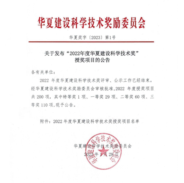 日前,课题成果——大型BIM设计施工软件研发与推广应用获得了2022年度华夏建设科学技术奖一等奖,奖项由天津米兰milan物联科技股份有限公司、中建工程产业技术研究院有限公司、广联达科技股份有限公司、北京盈建科软件股份有限公司等单位联合申报。